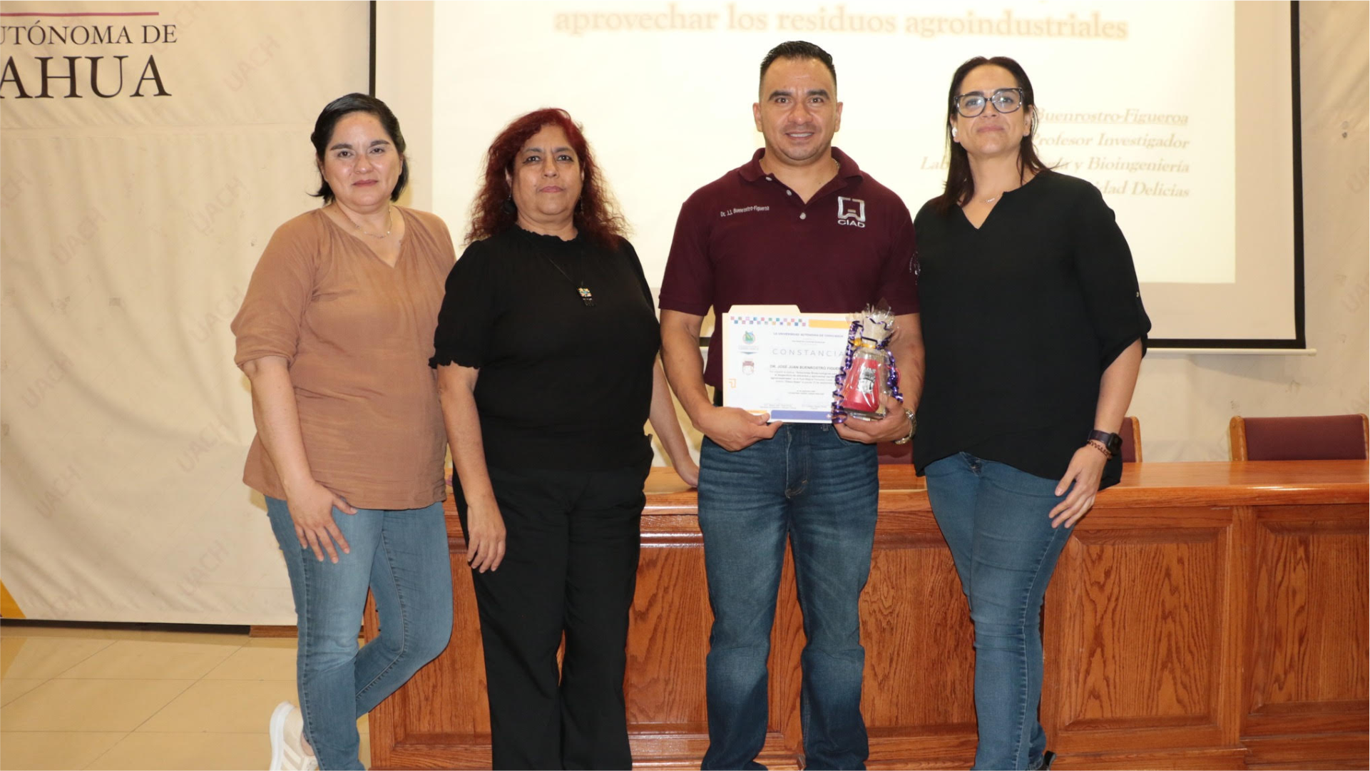 La jornada inició en el Aula Magna con la conferencia magistral “Soluciones biotecnológicas para reducir el desperdicio de alimentos y aprovechar los residuos agroindustriales”, impartida por el Dr. José Jan Buenrostro Figueroa, del Centro de Investigación en Alimentación y Desarrollo (CIAD-Delicias).