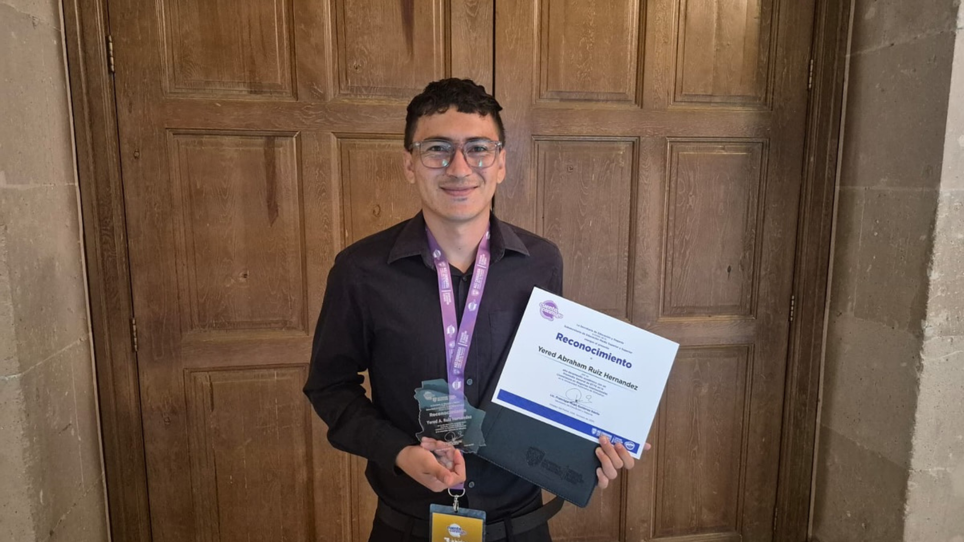 Durante la ceremonia se reconoció a los mejores promedios de las instituciones participantes, entre ellos Yered Abraham Ruiz Hernández, estudiante de la Facultad de Economía Internacional.
